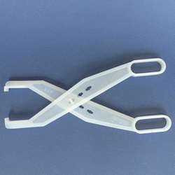 Large tongs molded from high purity PFA. The adjustable width allows them to be used with items of varying size. Easy to hold and manipulate while wearing gloves. Serrated teeth help to grip items more easily. They are chemically inert, extremely durable, and resistant to temperature extremes, and are ideal for handling, moving, or transferring PFA vials or other containers.