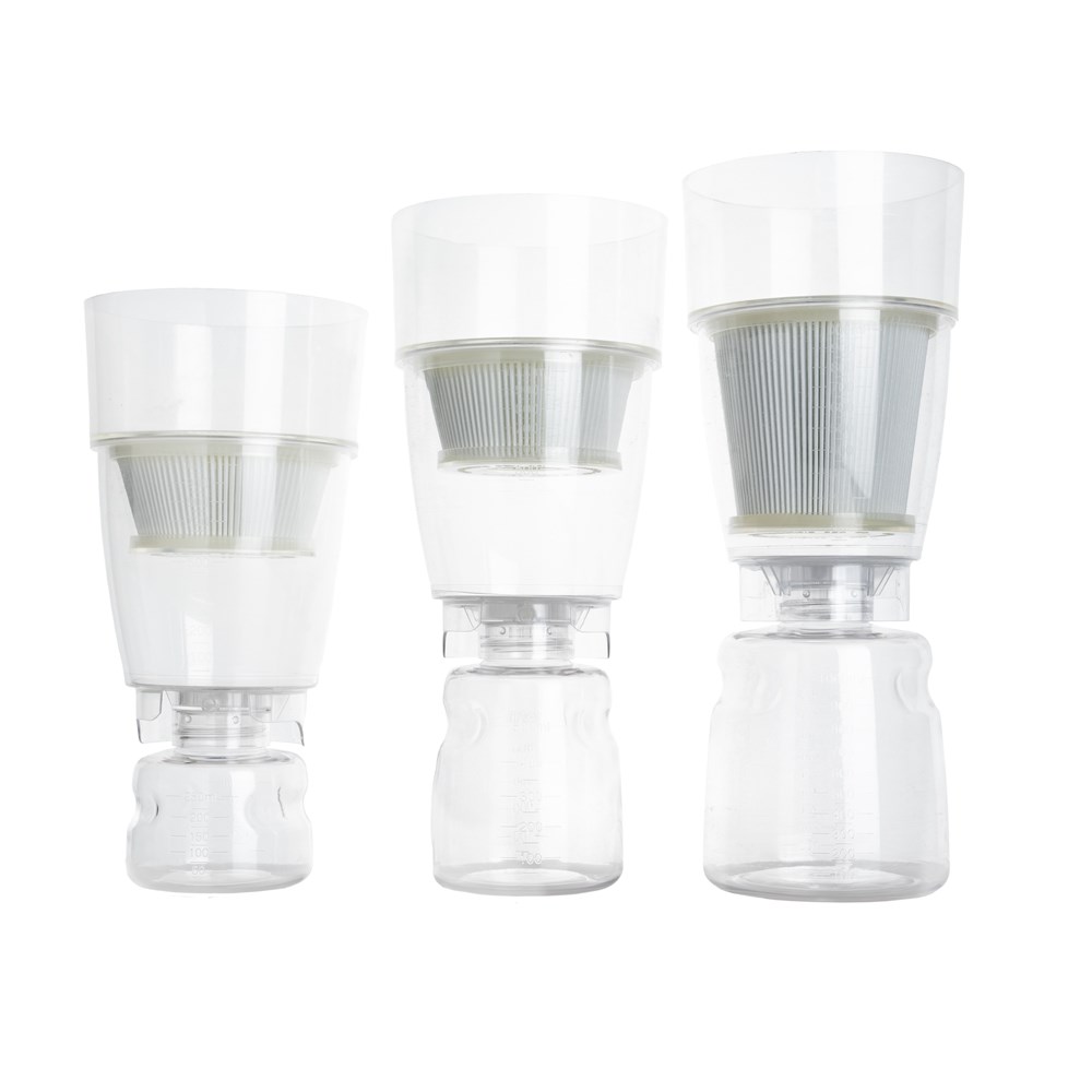 - Represents the first true 250 mL to 1 L one-step processing