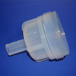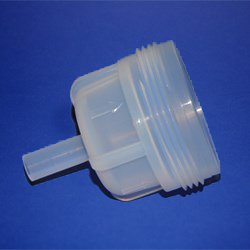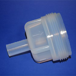 Molded PFA filter components enable the creation of chemically inert, custom filter assemblies in a variety of sizes and configurations. A filter assembly is comprised of an inlet, filter grid, clamp and outlet. Filter membranes are available for all assembly sizes, and can be changed without disconnecting external lines. Wrenches are recommended to obtain best performance.